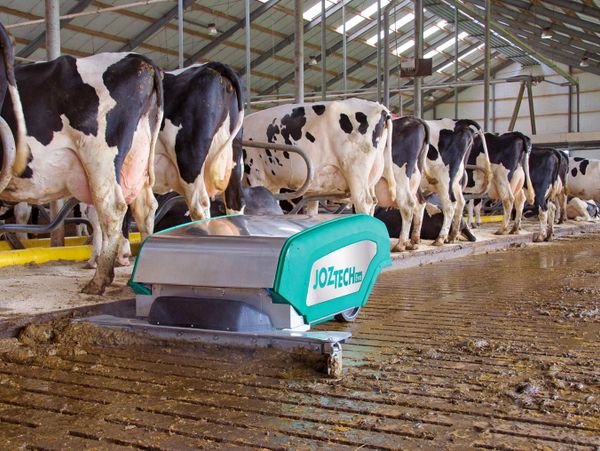 The JOZ-Tech is a robot scraper designed for a slatted floor. Features include a blade lift function and a water spray function making the machine capable of handling inclines and ensuring the cleanest possible floors.